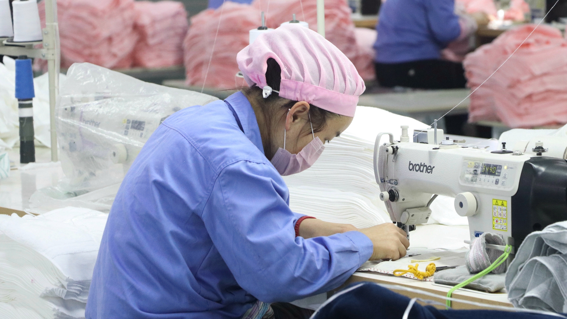 寒冬臘夜,臨近春節,孚日生產車間依然燈火通明,工人們正加緊趕制發往歐洲的紡織品訂單。
